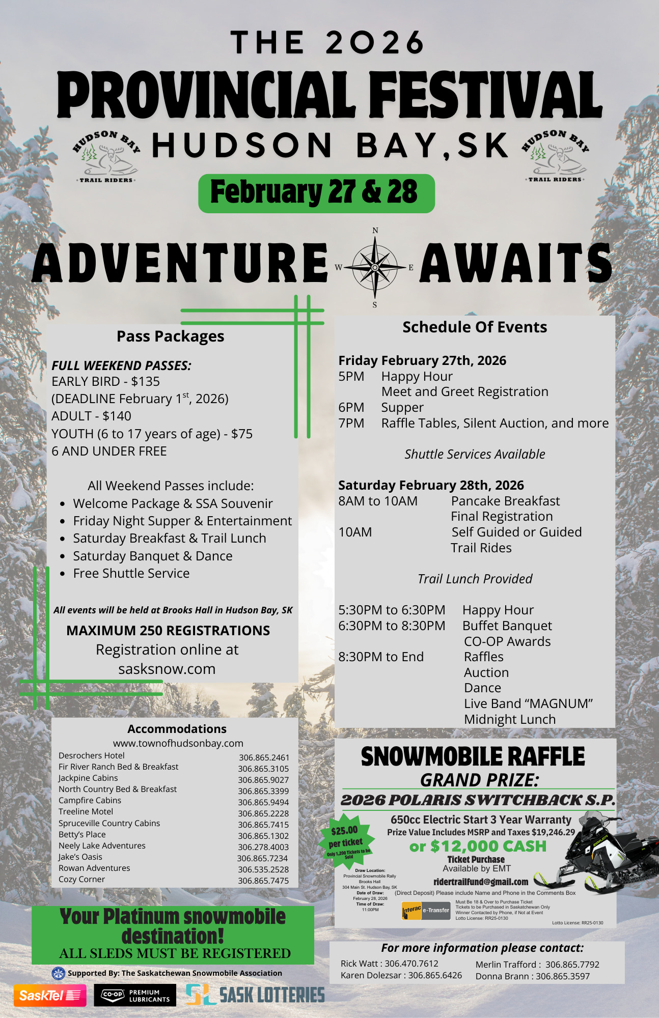 All events will be held at Brooks Hall in Hudson Bay, SK all sleds must be registered